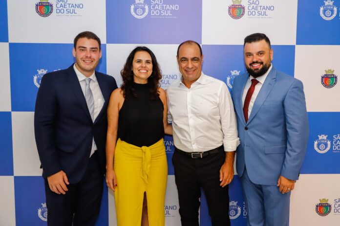 O prefeito de São Caetano do Sul, José Auricchio Júnior, empossou três novos secretários municipais na segunda-feira (27/2), em evento realizado no Cecape (Centro de Capacitação de Profissionais da Educação) Drª Zilda Arns, no Bairro Barcelona. São eles Carla Freitas Nascimento (Secretaria de Gestão e Governo Digital), Diego Santos Vido Faria (Secretaria de Mobilidade Urbana) e Matheus Lothaller Gianello (Secretaria de Planejamento). O deputado estadual Thiago Auricchio também participou da solenidade.