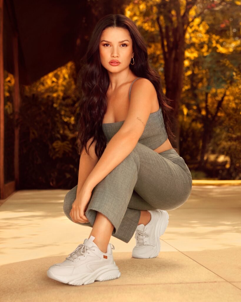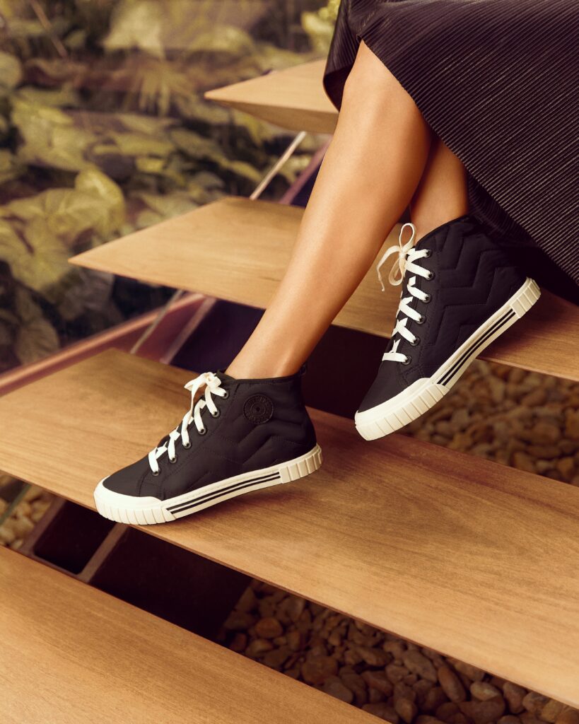 Queridinho da cantora, o Tênis Chunky é responsável por trazer um toque esportivo e confortável à coleção. Em um modelo carregado de personalidade, sua sola emborrachada, texturizada e robusta une conforto a um visual cool e moderno. Para Juliette, “O importante mesmo é que eu me sinta confortável, mas escolho a dedo. Seja antes ou depois da fama, uma coisa que eu sempre tive em mente é que gosto de me vestir para agradar a mim mesma”. Best-seller no último Inverno, o tênis de nylon com matelassê também surge repaginado com novas combinações de cores e materiais.