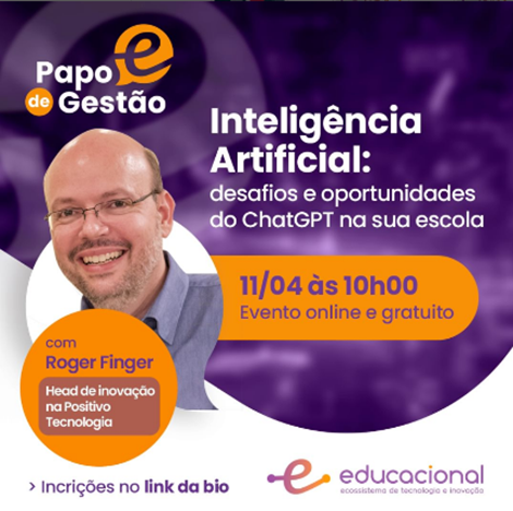 | O encontro terá a participação de Roger Finger, head de inovação tecnológica da Positivo Tecnologia e as inscrições gratuitas já estão abertas neste link. “O objetivo desse Papo de Gestão é debater como a inteligência artificial vem ganhando força no ensino, inclusive com ferramentas como o chatGPT. Queremos mostrar a gestores escolares como isso pode impactar no ensino e na aprendizagem, e até que ponto ela pode qualificar a educação”, afirma Martin Oyanguren, CEO do Educacional. |