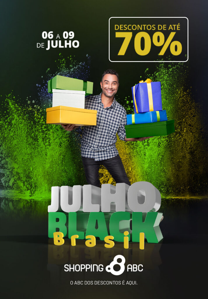 A AD Shopping e o Shopping ABC iniciam a sexta edição de sua liquidação Julho Black Brasil. Com produtos e serviços de diversas categorias com até 70% de desconto, a megapromoção acontece entre os dias 6 a 9 de julho. Na última edição, o Julho Black Brasil contou com mais de 6.000 lojas participantes que, juntas, incrementaram um aumento médio de 15% nas vendas dos shoppings do Grupo AD em todo o país.